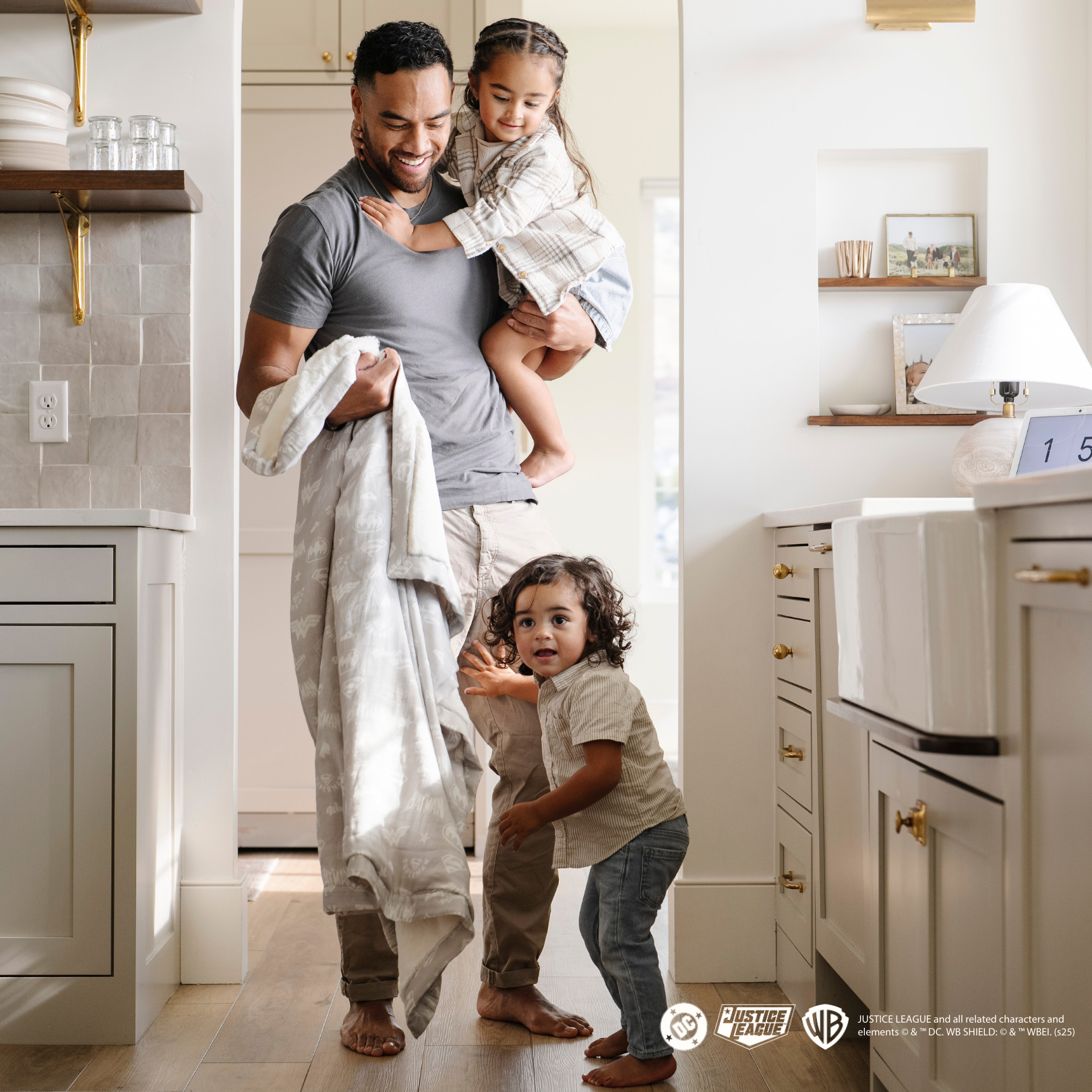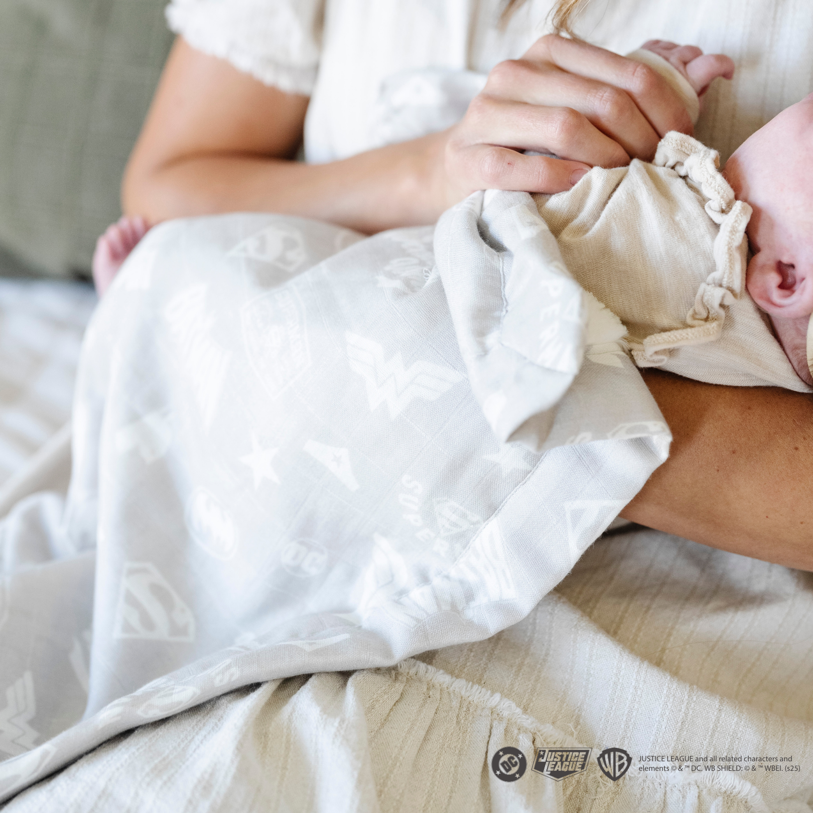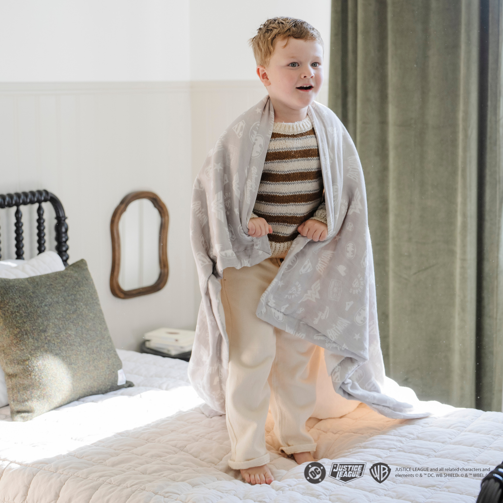 When the world needs comfort, the Justice League™ joins forces to answer the call! Featuring buttery Muslin and our signature sleek Lush, this blanket showcases all your favorite heroes in Saranoni’s signature luxurious style. Wash on cold with like colors, hang or lay flat to dry.