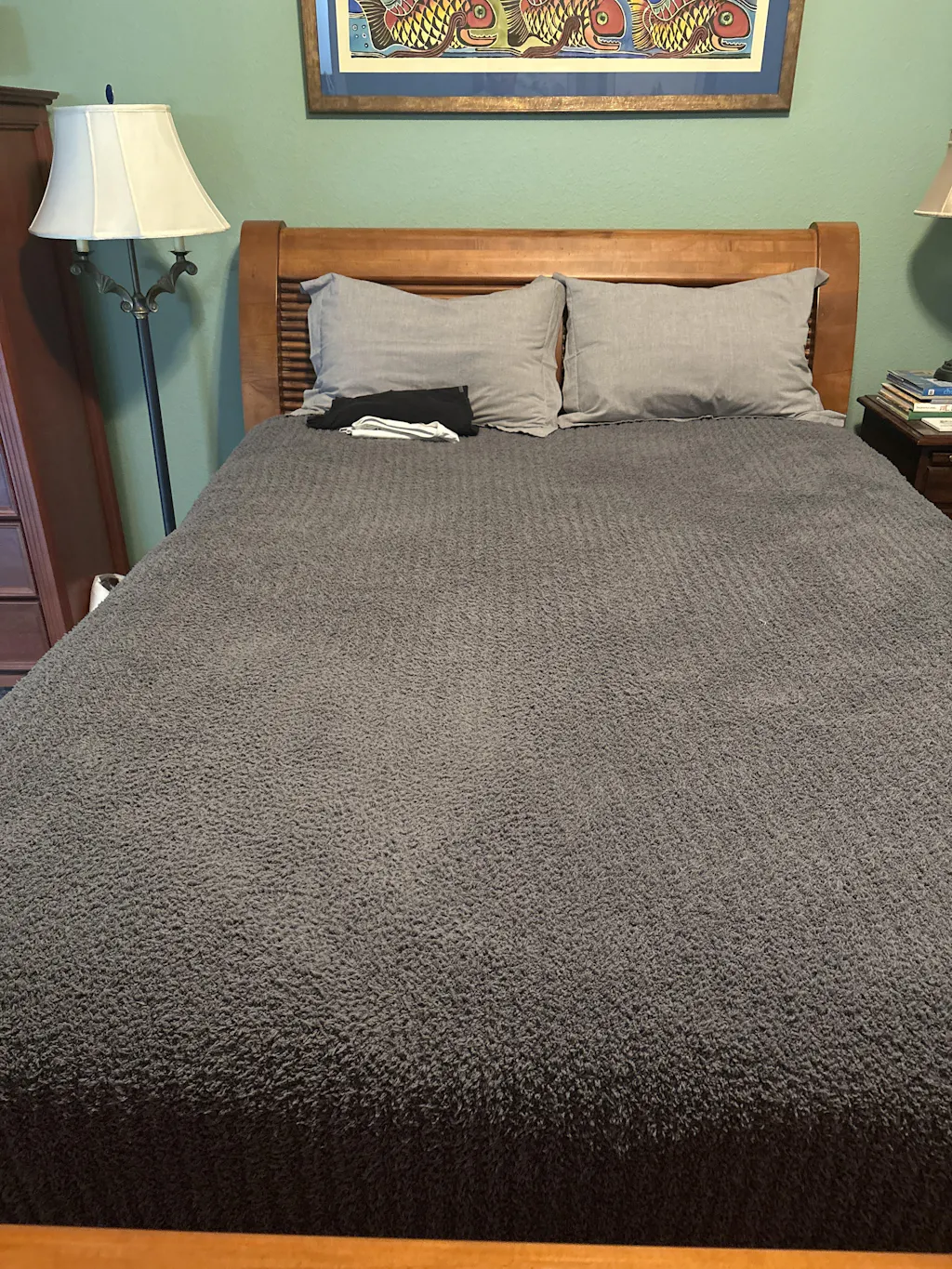 I used to sleep with a comforter and a duvet cover, I would go to sleep comfortably then wake up sweating. I had gotten blankets for my grandkids from Saranoni and loved them, so I noticed they made blankets for adults too! There was a sale and I had a coupon for the ribbed bambino queen size blanket for our bed. We love the softness, weight and color! I got the charcoal grey. I use it in place of my comforter and it is perfect💕 my 2 year old grandson Noticed I had a new blanket and when he crawled up for a nap said “it is cozy!”