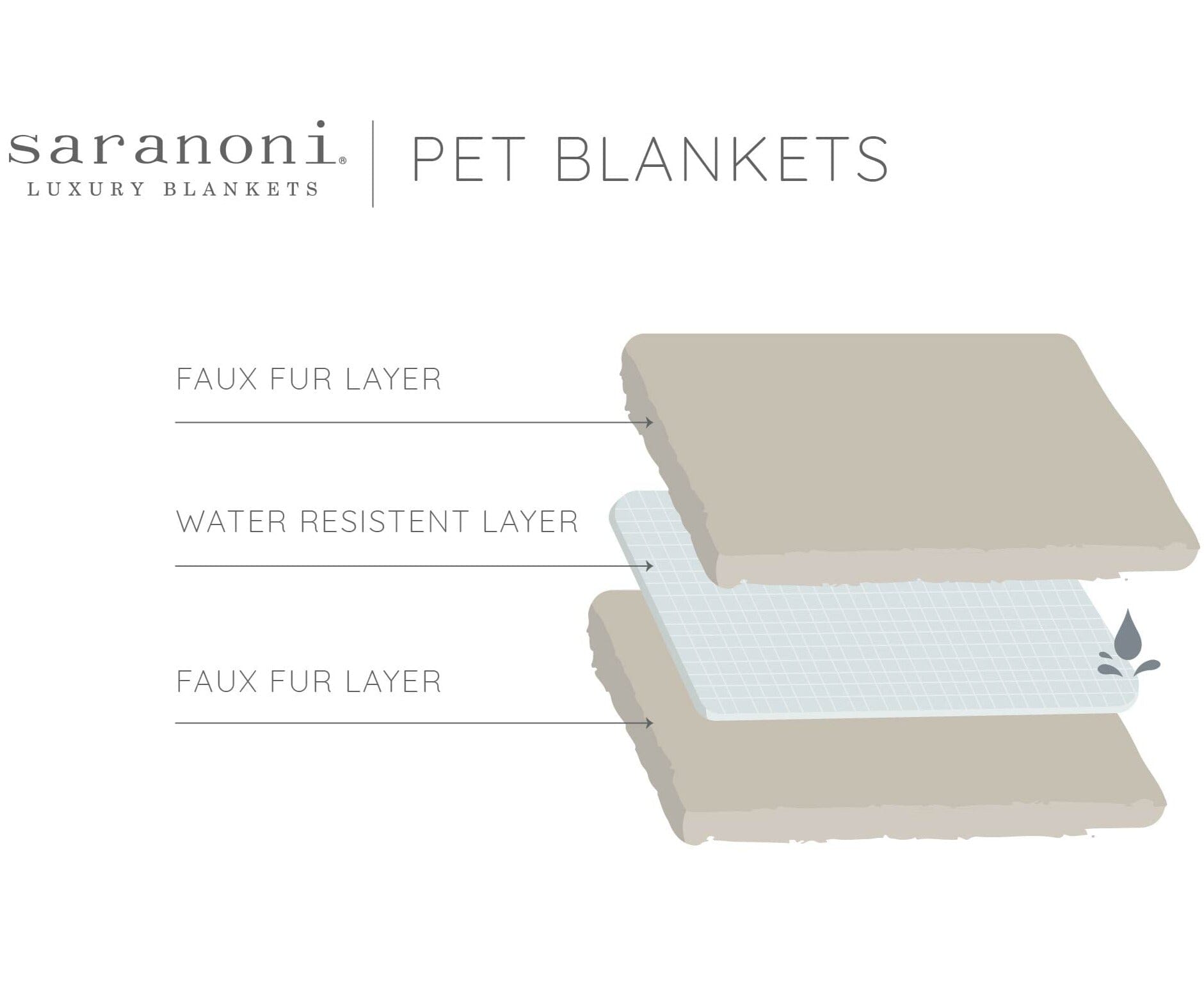 Around these parts, top-notch snuggling is a family affair–whether it’s movie night or s’mores around a fire, there’s always room for everyone under a Saranoni! After all–a snuggler’s a snuggler–no matter how small (or in this case, no matter how furry!) We’re thrilled to introduce Saranoni Pet Blankets. There’s no doubt–pets make a house a home, and now you can give back a little of the comfort they’ve brought to your home. Complete with our top-quality faux fur fabric and a 100% polyester liner, the Saranoni pet blanket is built to love and to last for years to come! Machine washable, spill and scratch resistant, and just as durable as it is soft! Browse our collection and choose between 5 elegant, neutral colors designed to compliment any home decor palette! Small, Medium and Large sizes available to accommodate pets of all sizes and stages!